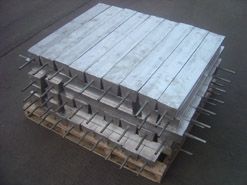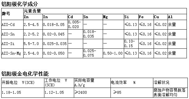 最常用的鋁合金陽極有Al-Zn-In系和 Al-Zn-Hg系陽極,適用于海水中的船舶、港工與海洋設施、海水冷卻水系統(tǒng)和儲罐沉積水部位等構筑物的陰極保護。鋁合金陽極生產(chǎn)執(zhí)行 GB4948 - 2002 《鋁-鋅-銦系合金犧牲陽極》。